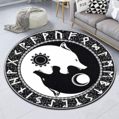 Black And White Wolf Round Carpet Rug – Round Rugs RG703