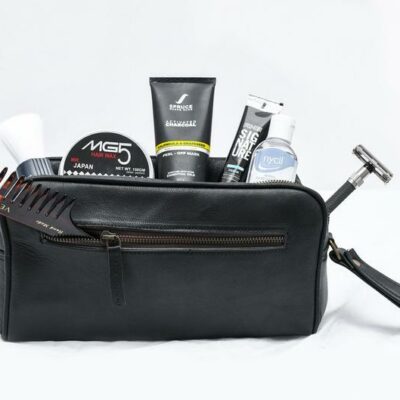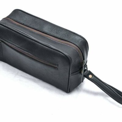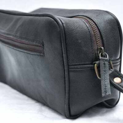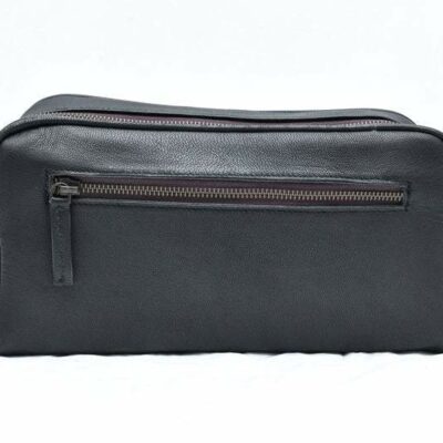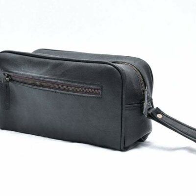 Keep your all grooming products organized and accessible with this stylish black leather toiletry bag. Whether you?re going globetrotting or heading to the travel and gym, this essential small leather piece of kit will help you organize your things easily so you can take them with you wherever you go.